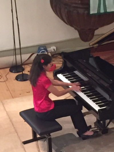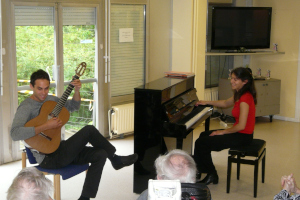 Les musiciens : Pierre-Stéphane Schmidlet au violon, Maxime Gilbert au violoncelle et Marine au piano