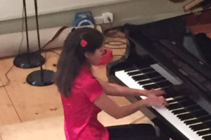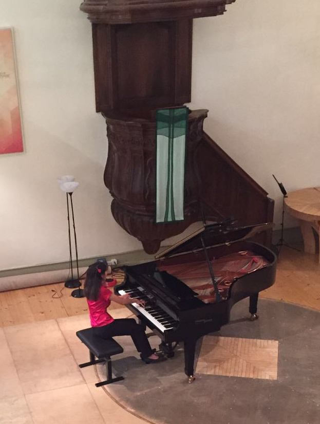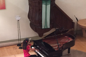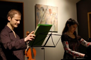 Les musiciens : Pierre-Stéphane Schmidlet au violon, Maxime Gilbert au violoncelle et Marine au piano